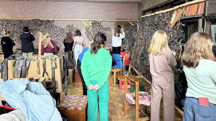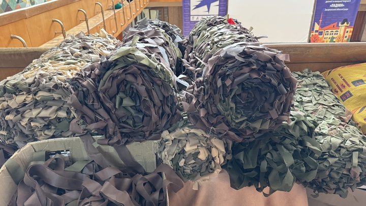 Сітки, які виготовили у ПАДІЮНі, військовим передає волонтер Євген: "Це буде вже 61 машина, яку я відвезу (на фронт — ред.), тому часто. Разів 70 був на передку, це 100%. Кожен має допомагати настільки, наскільки він може. Осторонь не можна стояти зараз. Ось діточки приходять — це їхній внесок в нашу перемогу".