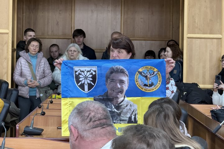На засідання прийшла мама загиблого захисника Ольга Сойко.