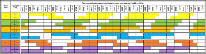 Графік погодинних відключень на 20.11. Закарпаттяобленерго