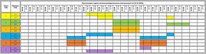 Графік відключень електроенергії на 04.12. Закарпаттяобленерго