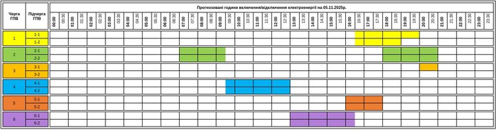 Графік відключень електроенергії на 05.11. Закарпаттяобленерго