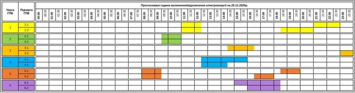 Графік відключень в Ужгороді на 25 листопада 2025 року. Закарпаттяобленерго