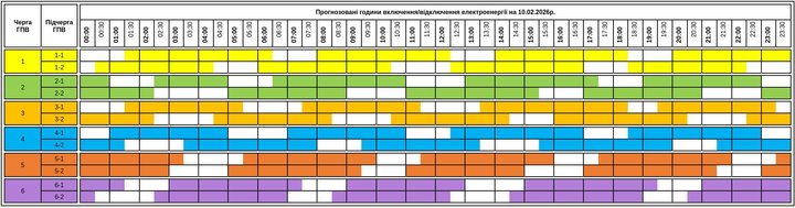 Графіки погодинних знеструмлень на Закарпатті 10 лютого. Фото: Закарпаттяобленерго | Facebook