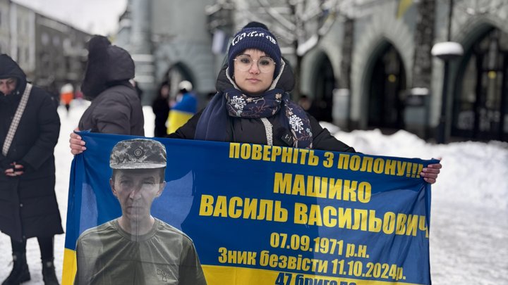 У Мукачеві в суботу, 10 січня, родичі військовополонених та безвісти зниклих військових організували виставку фотографій "Я чекаю на тебе!". На площі біля ратуші розмістили 34 мольберти зі світлинами військовослужбовців із Мукачева та області, розповіла Суспільному дружина безвісти зниклого В’ячеслава Марченка Марина.