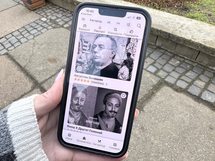"Є тут усі основні місця, постаті також, те, чим славиться Ужгород. Також є маршрути, наприклад, у пошуках мініскульптур — це буде аудіогід. Тут є мапа — на цій мапі розміщені всі заклади, що є в цьому застосунку. Вмикаємо фільтр, натискаємо, наприклад, вам цікаві тільки музеї й театри — і вам буде показувати, де є всі музеї й театри".