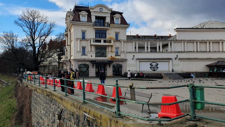 На Театральній площі через ризик обвалу відгородили підпірну стінку. Що каже мер Ужгорода