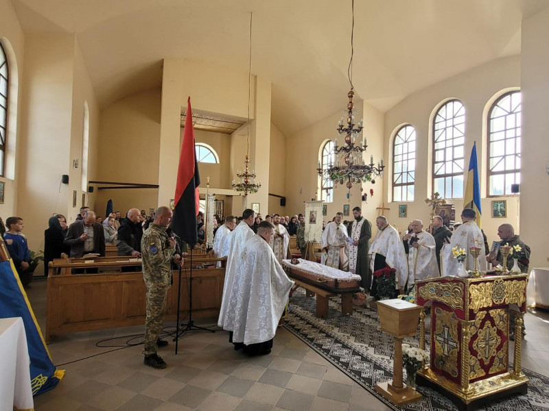 Чин похорону розпочався біля будинку, де проживав захисник. Попрощатися прийшли рідні, близькі, побратими, друзі й жителі громади.