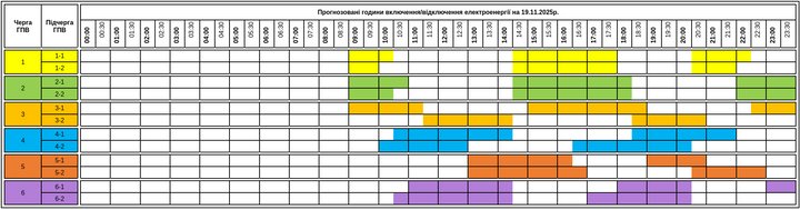 На Закарпатті застосовано графіки погодинних знеструмлень 19.11.2025 За інформацією: Суспільне. Графік погодинних відключень в Ужгороді на 19 листопада. Закарпаттяобленерго