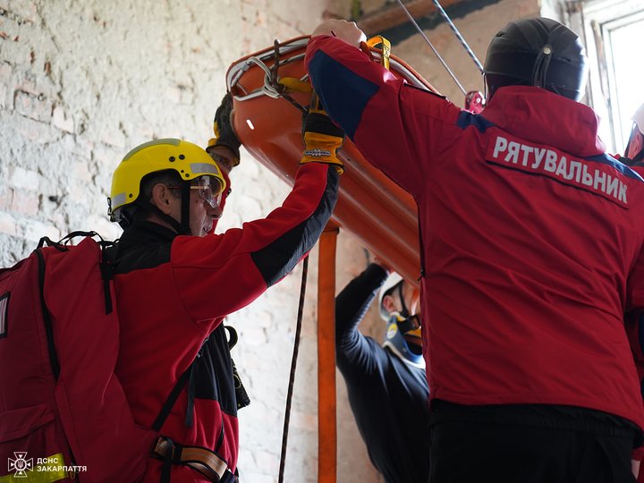 Гірський рятувальник, фельдшер Михайло Сливка з колегами під час роботи. ДСНС Закарпаття