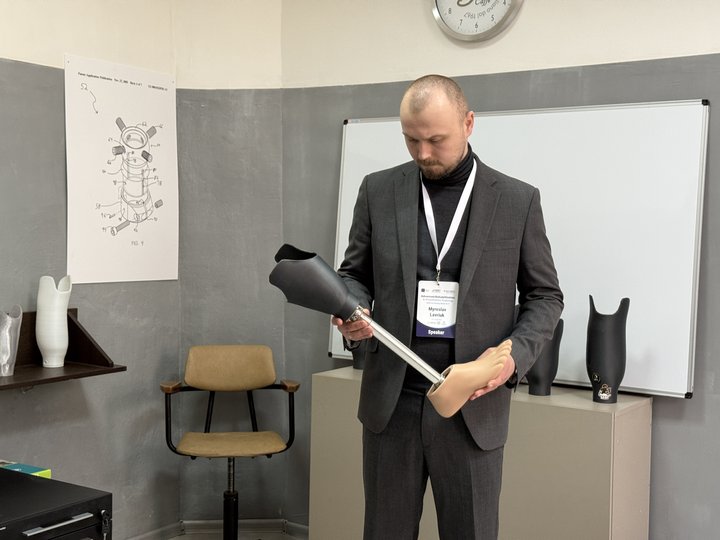 "Це благодійна місія, це від Америки, це так само фонд "Pray for Ukraine", плюс університет Бейлора по протезуванню техаський, вони разом передають ці протези. Великий плюс цієї технології в тому, що протез можна виготовити за три години. Пацієнт прийшов, ми його відсканували, він може зачекати тут, він може прийти на наступний день. Принтер друкує за рахунок карбонового волокна. Матеріал витримує до 350 кг навантаження, перепади температури від 250 до -40".