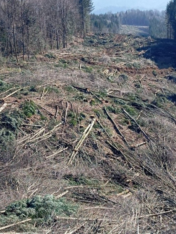 Рубки лісу на маршруті прокладання лінії елетропередач біля села Щербовець. Громада села Щербовець/Facebook