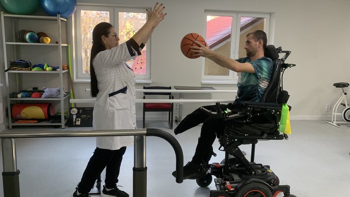 Оновлене реабілітаційне відділення. Суспільне Ужгород/Ганна Попп"Реабілітаційне відділення розраховане на 20 стаціонарних ліжок, тобто одночасно можуть перебувати 20 пацієнтів. Пацієнти, які в нас перебувають, — це після черепно-мозкових травм, після хребетно-спінальної травми, після інсультів, але якщо ми говоримо й про військовослужбовців, то це й мінно-вибухові ураження кінцівок, внутрішніх органів. Також наша команда надає допомогу для пацієнтів у реанімації. Тобто це гострий етап реабілітації, і для пацієнтів після інсульту в інсультному блоці цієї лікарні", — повідомила завідувачка реабілітаційного відділення Ужгородської міської багатопрофільної лікарні Катерина Зінов'єва.