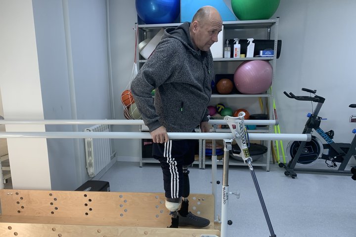 "На що хочу наголосити — дуже хороші тут реабілітологи. Можу показати: в мене розгиналася нога от настільки приблизно, коли я тільки сюди прийшов. Це в мене другий етап лікування. Зараз у мене нога майже рівна — я вже можу присідати, відтискатися, підтягуватися", — розповів чоловік.