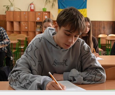 В Ужгородському ліцеї №5 після уроків одинадцятикласники разом із вчителями готуються до НМТ: виконують тести та повторюють матеріал.