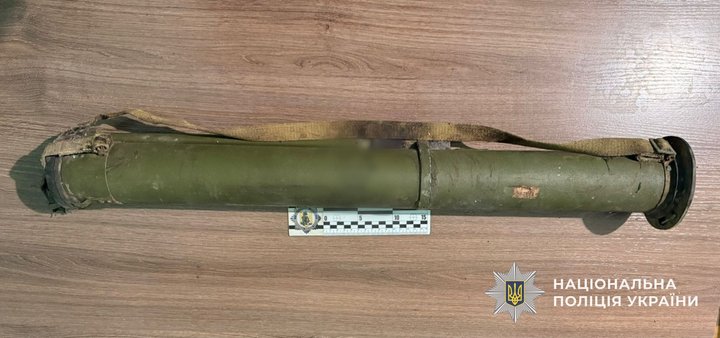 Ручний гранатомет, вилучений у підозрюваного. Поліція Закарпаття