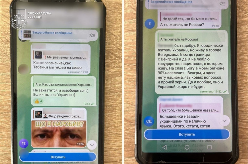 Переписка підозрюваного в чаті. Прокуратура Закарпаття
