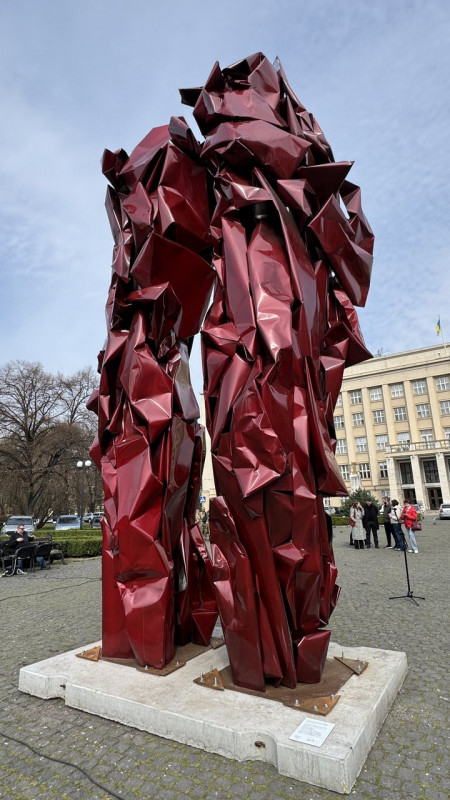 Інталяція Михайла Деяка “Реконструкція подій” на площі Народній в Ужгороді. Сергій Чернишов/Суспільне Ужгород