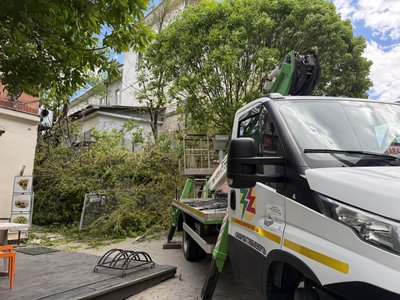 Поламані гілки дерев на вулиці Августина Волошина в Ужгороді. Руслана Гостюк/Суспільне Ужгород