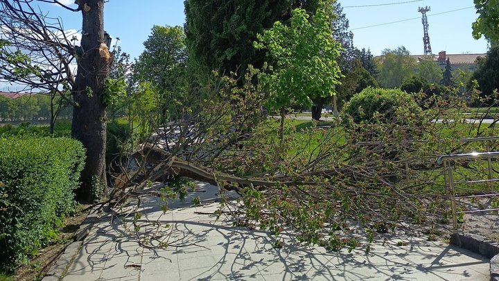 На набережній в Ужгороді вітром зламало гілку дерева. Юрій Ломакін/Facebook