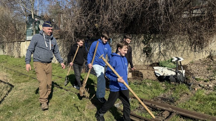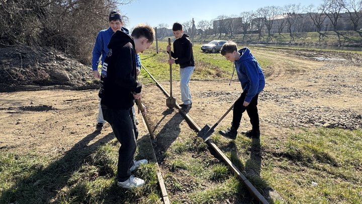 Прибирали тут і працівники дитячої залізниці, серед них — Даніїл: