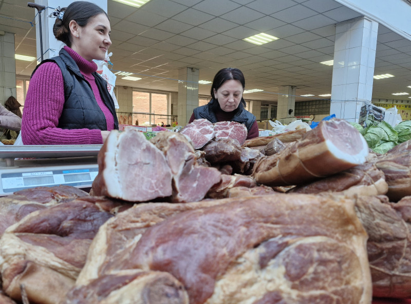 Продавчині м’яної продукції на ринку в Ужгороді. Яна Созанська/Суспільне Ужгород