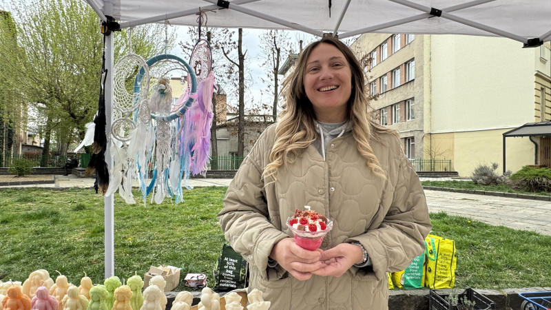 Ужгородка Іванна продає свічки із соєвого та бджолиного воску. Каже, займається виготовленням чотири роки.