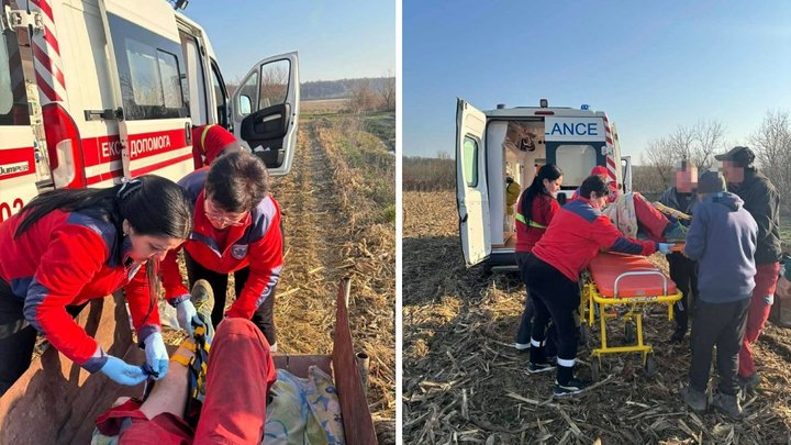 Коли бригада швидкої наближалася до місця події, з’ясувалося, що знайомі чоловіка вже вивозили його з лісу на причепі мотоблока. Медики зупинили їх у полі й одразу почали надавати допомогу.
