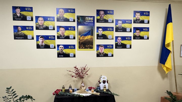 Присутні на піднятті “Прапора надії”. Суспільне Ужгород/Сергій Чернишов"Ця акція розпочинається вперше, тобто на Закарпатті серед загальноосвітніх шкіл. Це перший заклад освіти, в якому здійснюється ця акція "Прапор надії". Що стосується встановлення меморіальних дощок, це меморіальний куточок, це ціла збірка матеріалів про військовослужбовців", — доповнив Євген Грабар."Учні відшуковували інформацію про життя цих випускників, про те, де вони були, на якій ділянці фронту, коли загинули. І, оцю всю інформацію зібравши, вирішили зробити таку стіну пам'яті", — повідомила директорка ліцею імені Ґренджі-Донського Марія Гринчук.