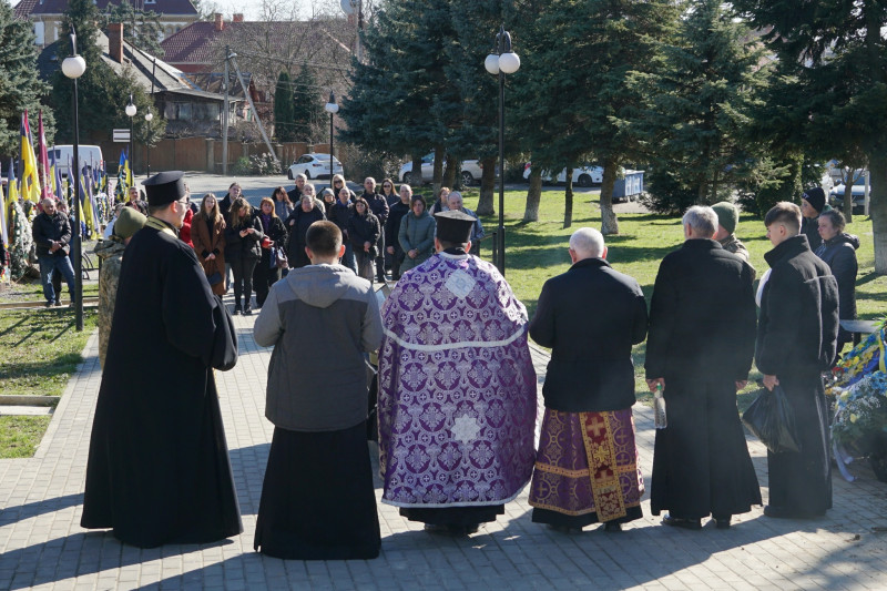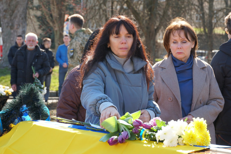 Чин похорону відбувся на площі Народній. Провести військового в останню путь прийшли військові, містяни. Він загинув 2 листопада 2025 року під час бойового завдання біля населеного пункту Родинське Донецької області.