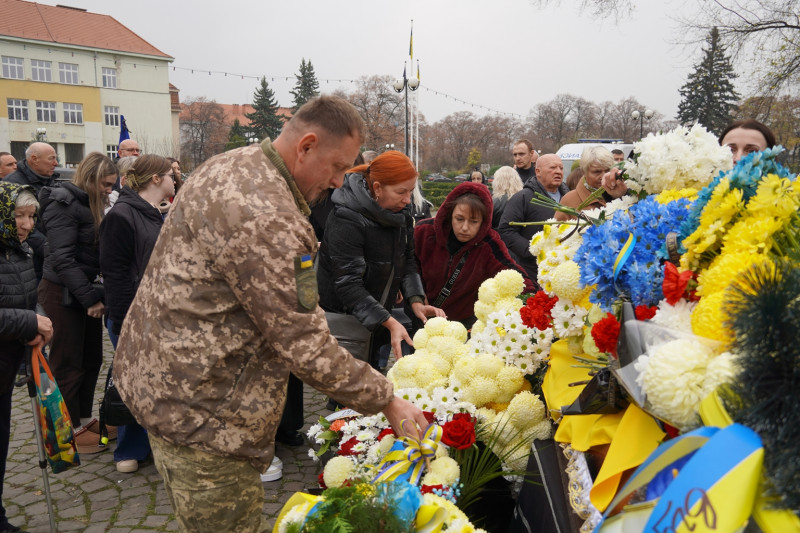 Провести воїна на площі Народній прийшли рідні, побратими, друзі, знайомі, військові, містяни. Військовий загинув 19 жовтня 2025 року під час виконання бойового завдання на напрямку "Борисівка — Андріївка" Ізюмського району Харківської області.