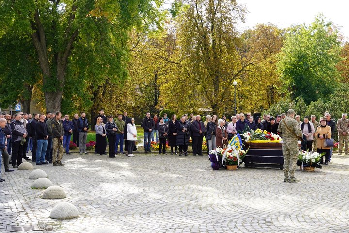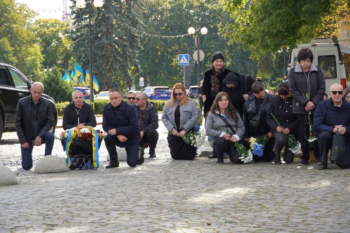 Чин прощання відбувся на площі Народній, біля пам’ятника Тарасу Шевченку. Провести військовослужбовця в останню путь прийшли рідні, друзі, військові, містяни, представники влади.