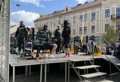Учасники змагань “Карпатський виклик” виконують жим штанги лежачи. Руслана Гостюк/Суспільне Ужгород
