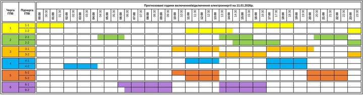 Графік погодинних відключень на 11.01. Закарпаттяобленерго