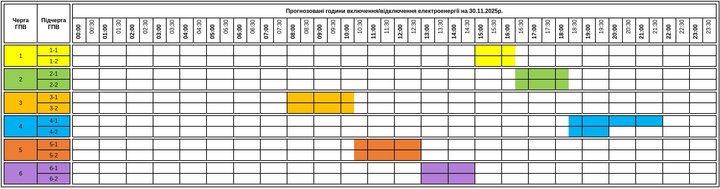 Графік вимкнення світла на Закарпатті 30 листопада. АТ “Закарпаттяобленерго”/Telegram