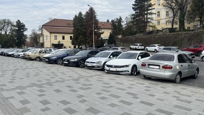 Машини, припарковані на площі Поштовій в Ужгороді. Сергій Чернишов/Суспільне Ужгород