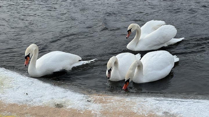 За словами біологині, годувати птахів необов’язково, оскільки вони знаходять їжу самостійно. Проте, якщо є бажання це зробити, то найкраще — це цільне зерно: "Лебеді дуже охоче їдять зерно кукурудзи. Це може бути зерно пшениці. Я вже спостерігала, що пшеницю більше їдять крижні. Можна ще давати цільне зерно вівса. Чим більш необроблене зерно, тим краще. Не можна хлібом, булками, тістечками і так далі. Це категорично не можна. Бо це є штучні для них корма — там є дріжджі, там є багато інших добавок, які вони не можуть перетравити, і вони помирають просто від того, що не можуть перетравити це все".