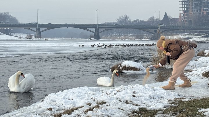 Місцева жителька Оксана годує лебедів. Суспільне Ужгород/Сергій Чернишов