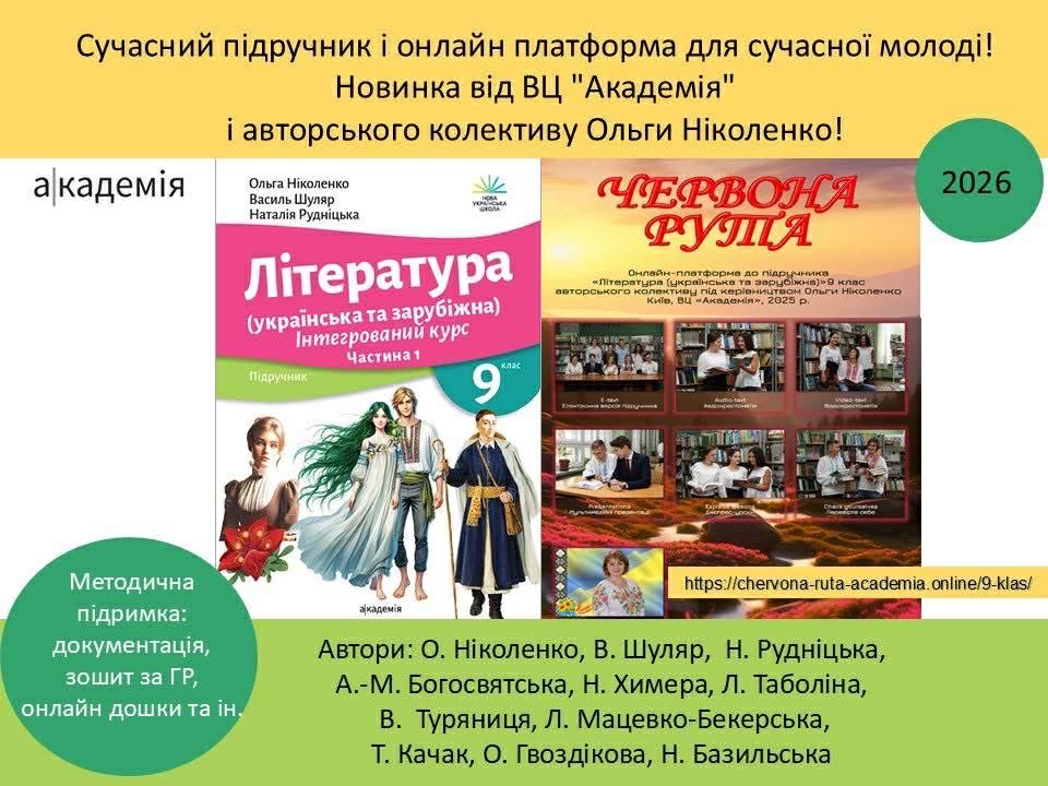 Ураховуючи вимоги часу, паралельно ми розробили й запропонували вчительству Модельну програму інтегрованого курсу літератур (української та зарубіжної) “Червона рута” й навчально-методичний комплекс до неї з такою ж назвою, що є у вільному доступі абсолютно безкоштовно, як і решта наших платформ.