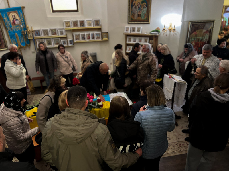 Попрощалися із військовим у Свято-Успенському храмі. Родина, знайомі, побратими та небайдужі містяни прийшли, аби віддати шану захиснику.