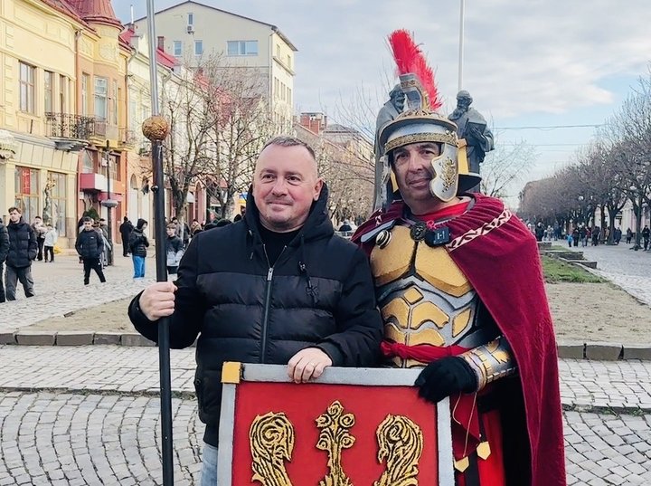Олесандр Хлопонін фотографується з перехожими. Міла Мороз/Суспільне Ужгород