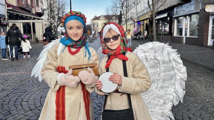Лада Тараканова й Евеліна Туряниця в костюмах янголів. Міла Мороз/Суспільне Ужгород