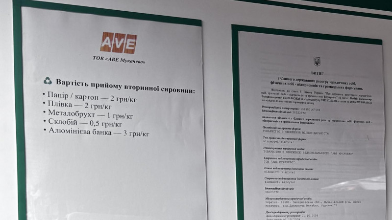 За словами Наталії Якубик, на стенді вказані розцінки: папір і картон приймають за 2 грн/кг, метал — за 1 грн/кг, скло — 0,5 грн/кг, алюмінієві банки — за 3 грн/кг.