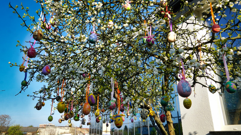 Уже цими вихідними дерево розвітне в повну силу. Також вихованці Центру дитячої та юнацької творчості власноруч виготовили різнобарвні великодні писанки та оздобили ним дерева.