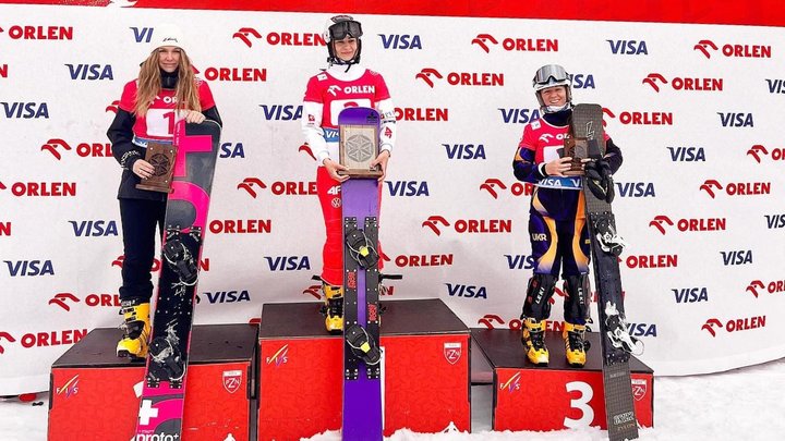 Закарпатська сноубордистка Аннамарі Данча здобула бронзову нагороду на етапі Кубку Європи в Польщі 8 березня 2026. bukovel.ukr.race.team