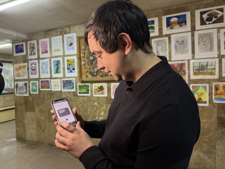Тарас Кривуляк показує застосунок з перекладом жестовою мовою. Руслана Гостюк/Суспільне Ужгород